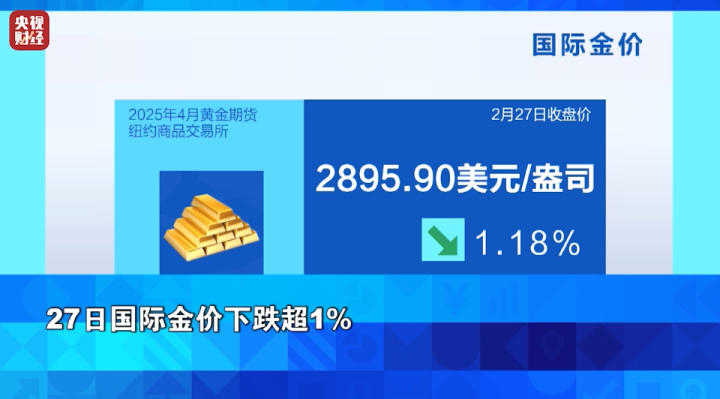 美元指数从近三个月来的低位持续反弹,周四上涨0.78%,对以美元计价的黄金价格构成压力,国际金价27日下跌超1%,跌破每盎司2900美元整数关口。纽商所4月黄金期价收于每盎司2895.9美元,跌幅为1.18%。